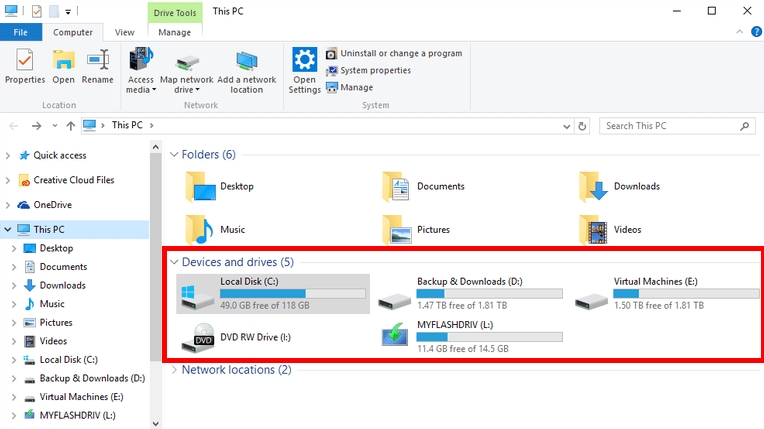 Explore if there enough free space for downloading the game on your Windows PC. This PC - Devices and drives will show you the needed information.